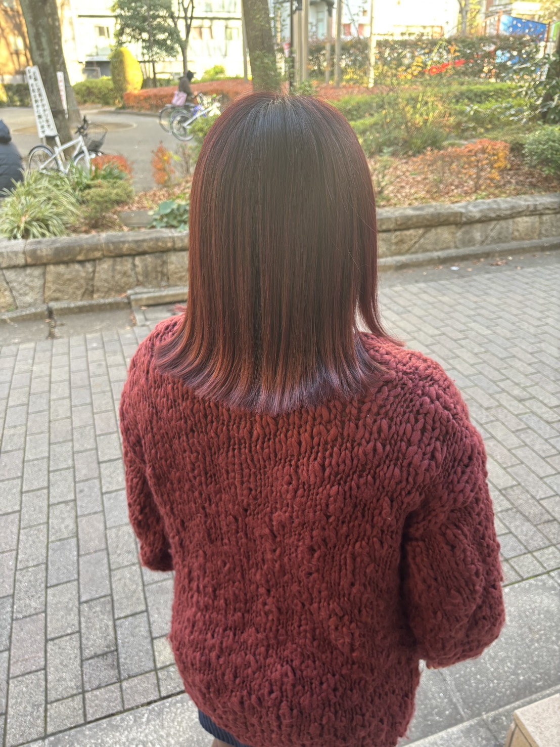 伸ばし途中の方なので何か変化が欲しいとのことで今回はお色味を濃いめに出してカシスカラーに◎