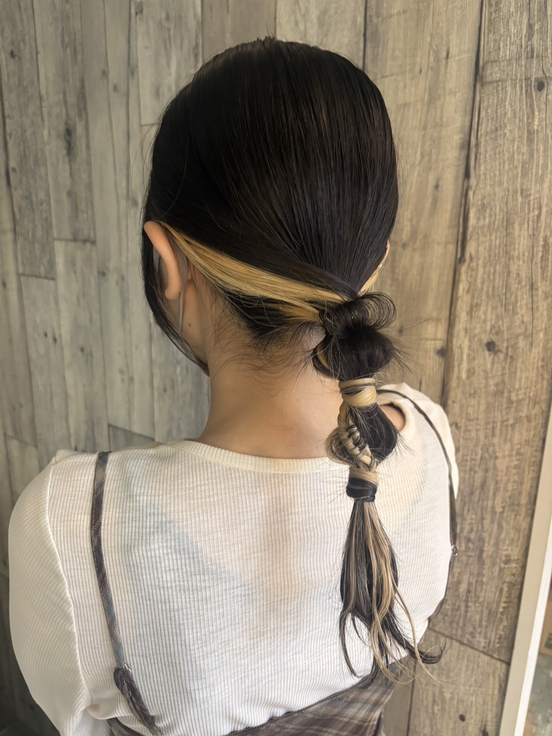 耳まわりや毛先のカラーがちらっと見えるのもポイントで、動きと立体感が出てとても可愛い仕上がりになります!