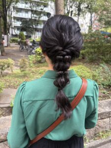 落ち着いた印象の中にも、さりげないおしゃれ感を出した編みおろしスタイル!