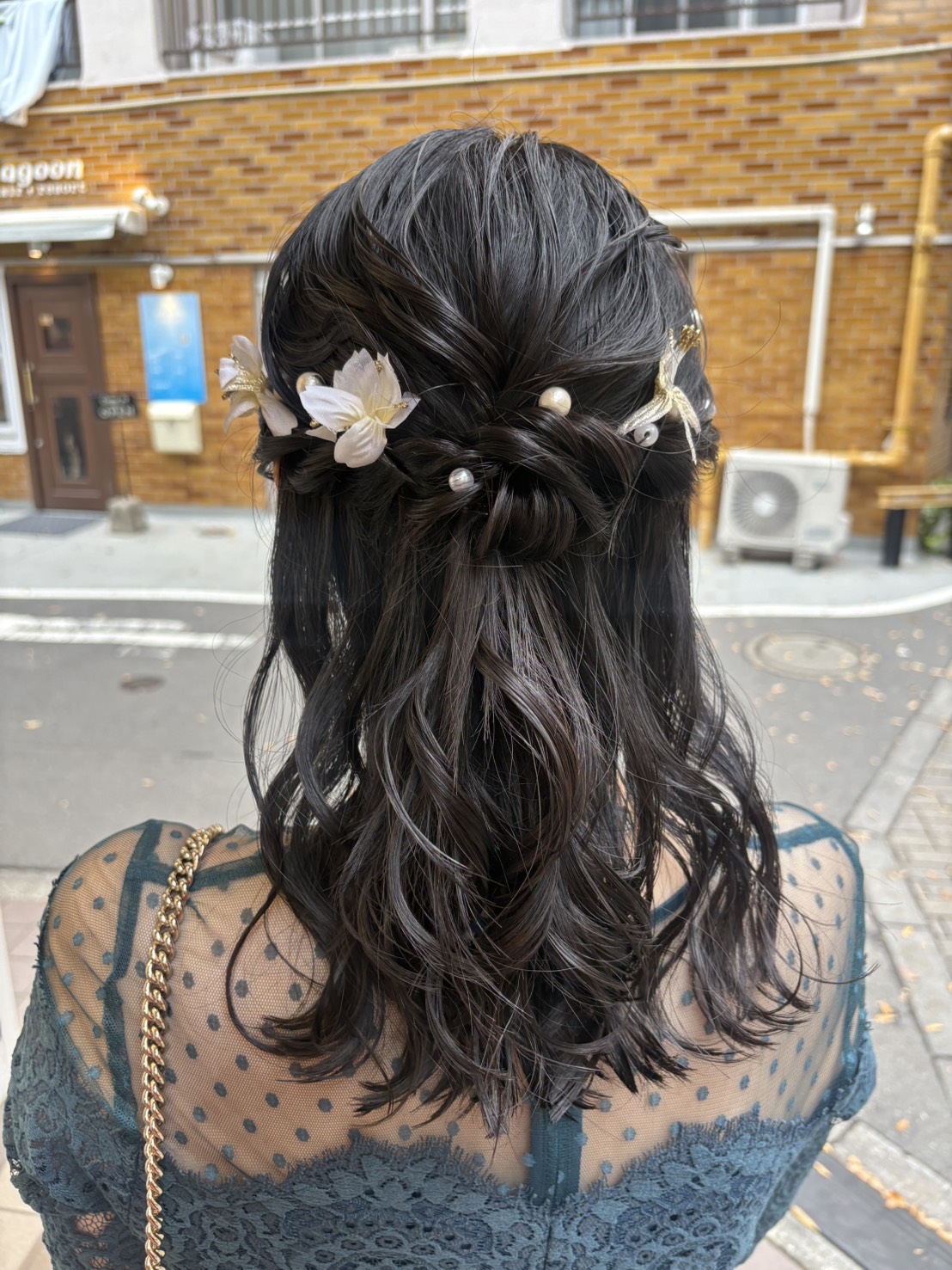 結婚式の参列ヘアや、ちょっとしたお出かけにオススメなふわふわハーフアップです!!