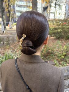 ツヤがあり、シンプルだけど髪飾りでよりオシャレなスタイルになります☆