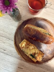 写真はある日の朝食 お客様おすすめのパン屋さんのパンです♪