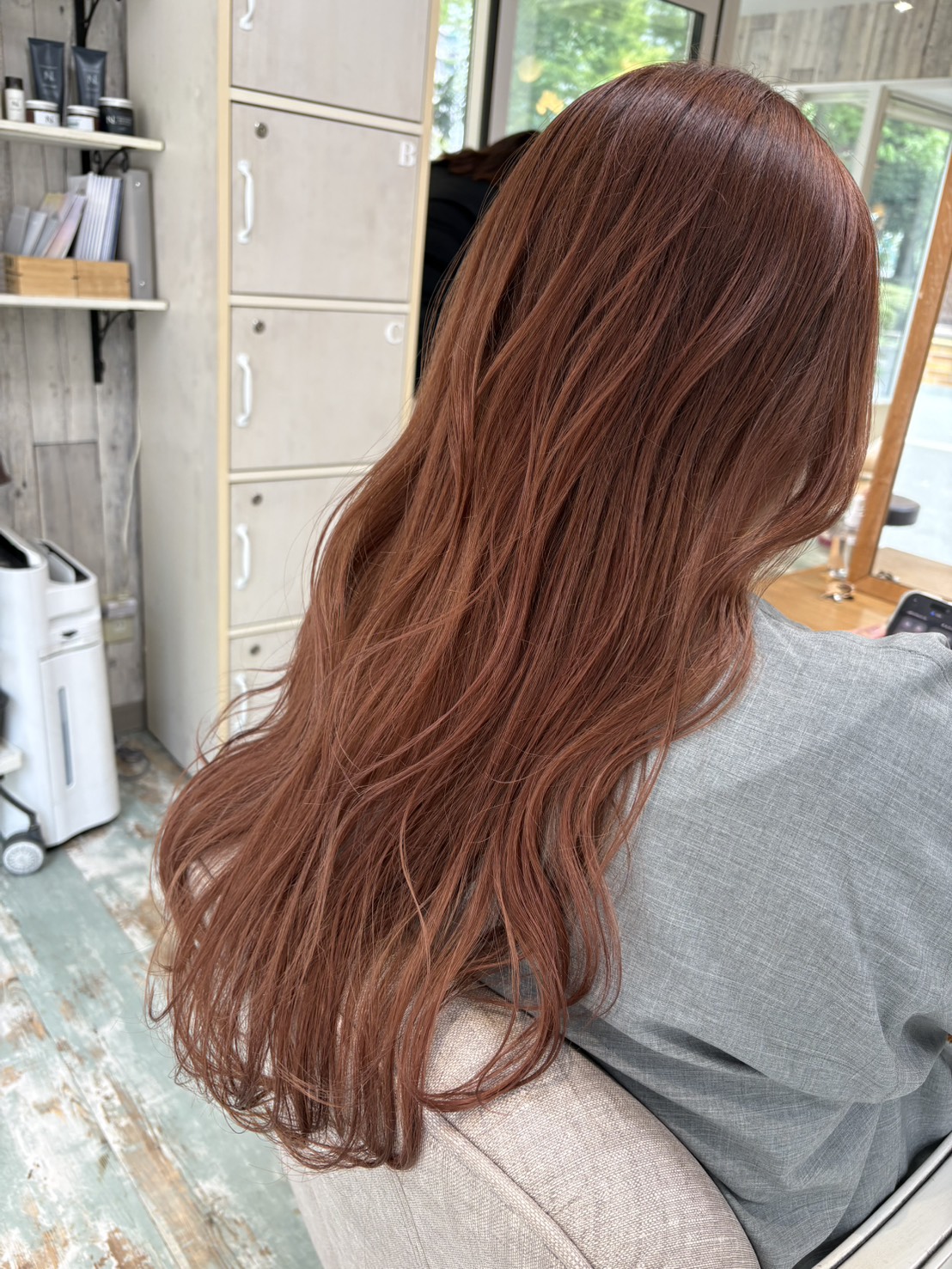 室内と屋外で見え方が変わる!オレンジベージュ♪